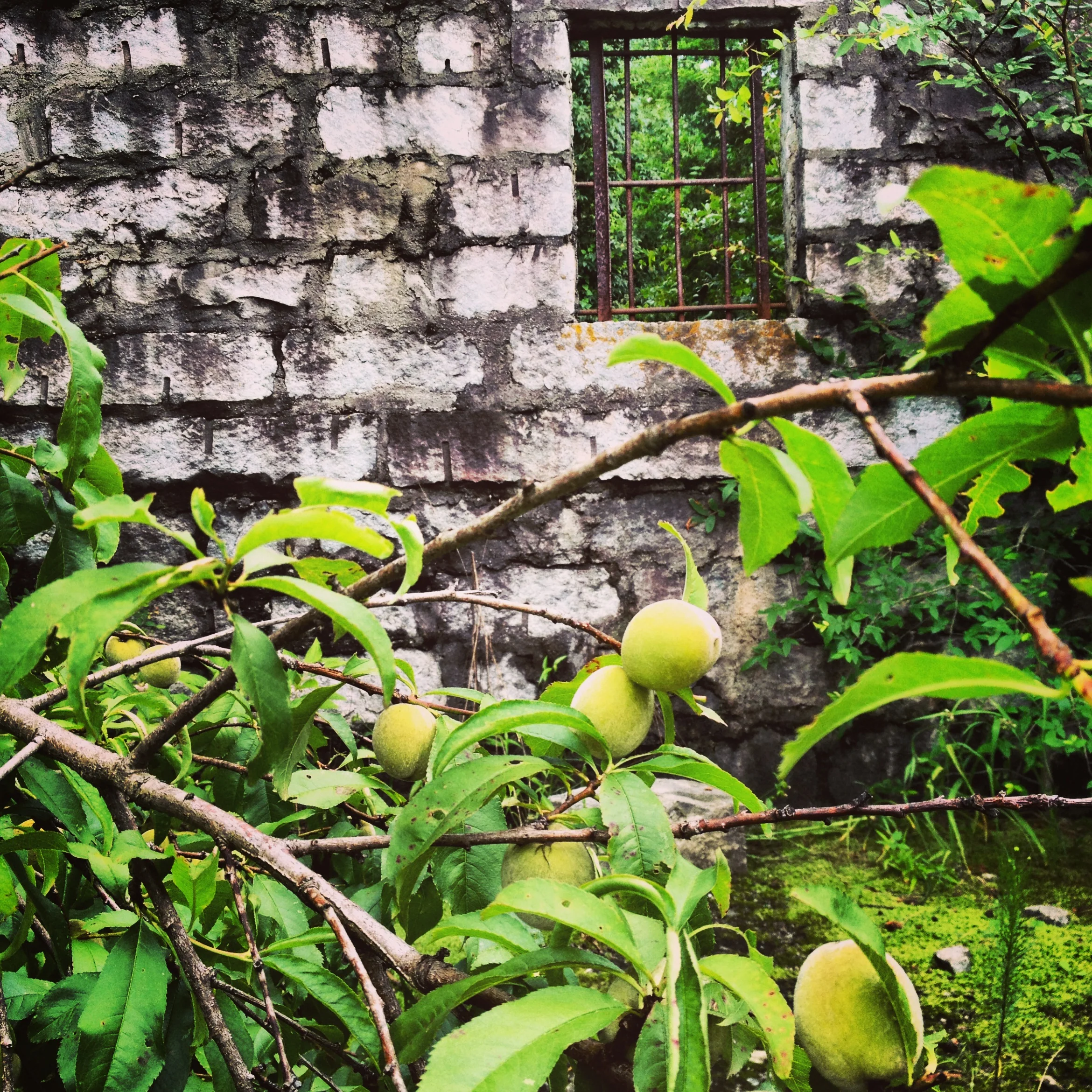 The first and only peach tree I have seen in Georgia was found in a hollowed-out stone building with iron bars. It looked like the peaches were in jail.